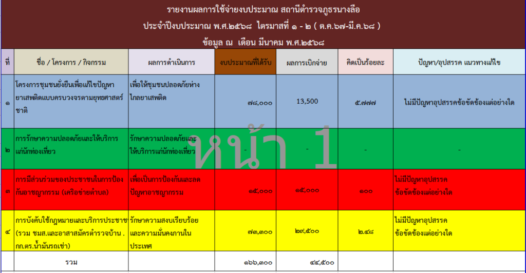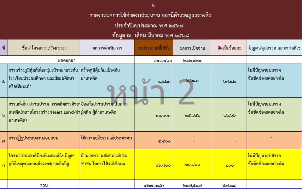 รายงานผลการใช้จ่ายงบประมาณประจำปี 2568