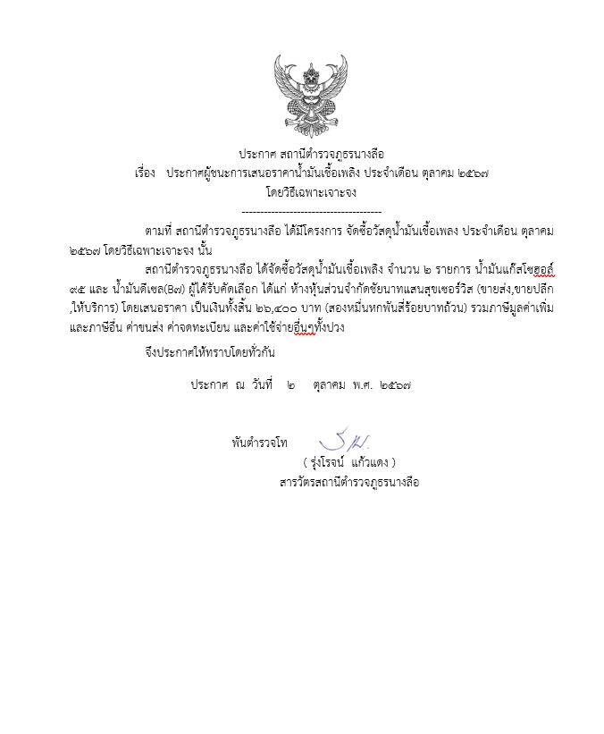 ประกาศจัดซื้อจัดจ้าง เดือน ต.ค.2567