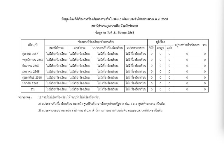 ข้อมูลสถิติเรื่องร้องเรียนการทุจริต ประจำปี 2568